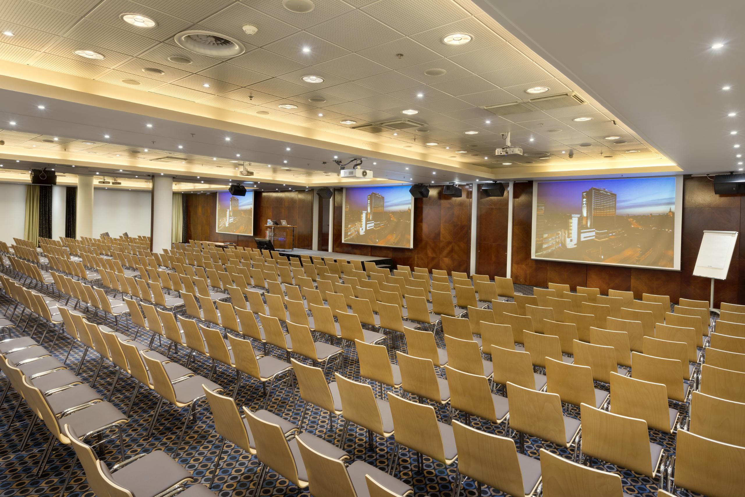 Külalisi teenindavad omaette avar fuajee ning garderoob. Erisuuruseid konverentsiruume on võimalik helikindlate vaheseintega ja vastavalt vajadusele kombineerida. Asukoht linnasüdames ning lai valik muid teenuseid teevad sellest ühe mugavaima paiga oma ürituste korraldamiseks.Konverentsikeskuse suurim saal Grande mahutab kuni 500 inimest. Hotelli professionalane konverentsitiim pakub parimad lahendused kliendi erinevate soovide ellu viimiseks, olgu teemaks virtuaalne või hübriidkonverents, töine koosolek, pidulik vastuvõtt või gala-õhtusöök.