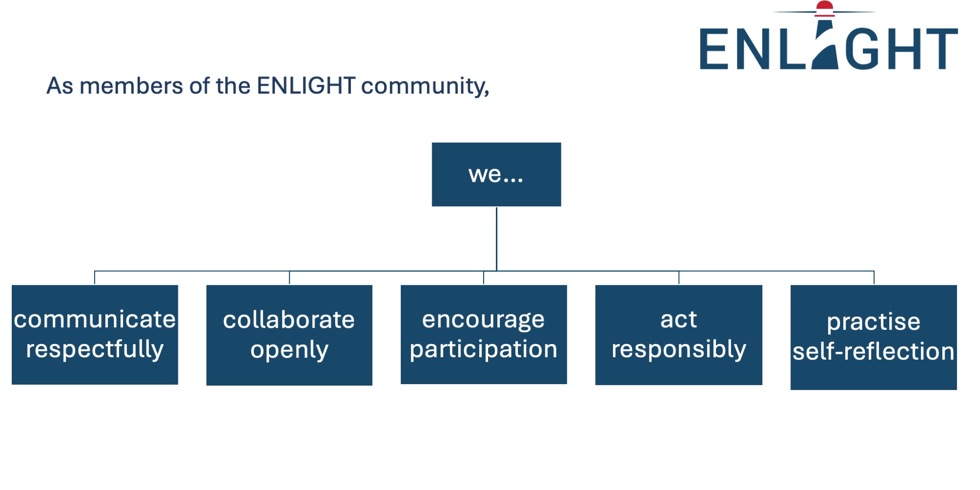 ENLIGHT is dedicated to the constructive collaboration of many individuals. Aware of our social and personal responsibilities, the alliance has adopted a code of conduct as a guiding framework for respectful interaction with one another.