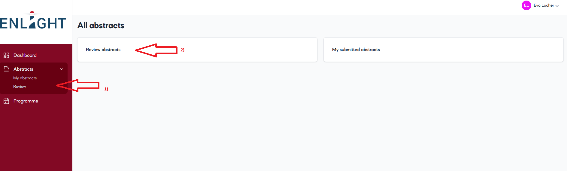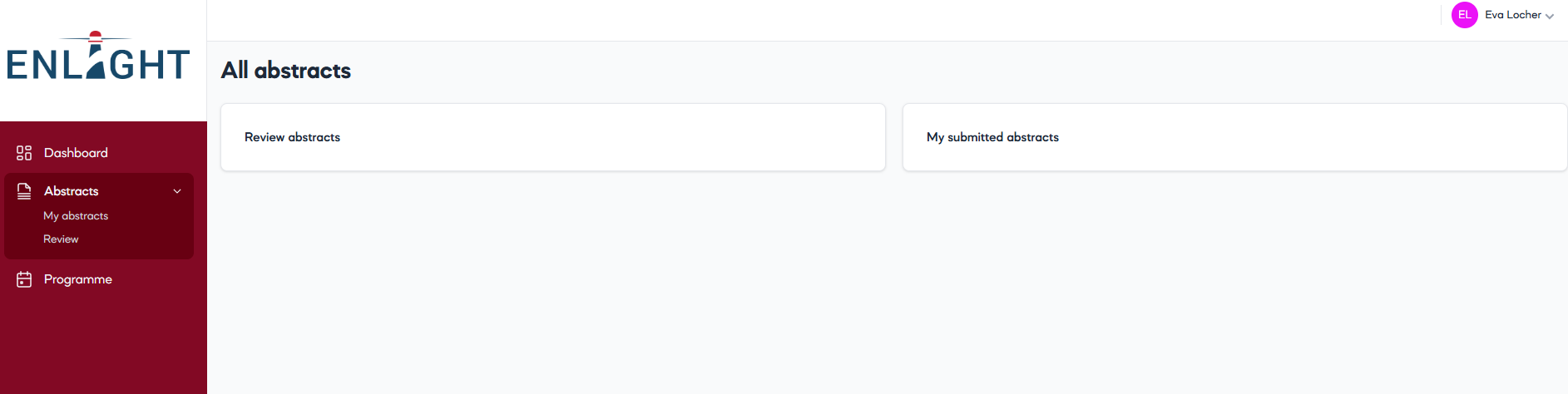 In the Abstracts section you will find 'Review abstracts' and 'My submitted abstracts' if you have submitted any.